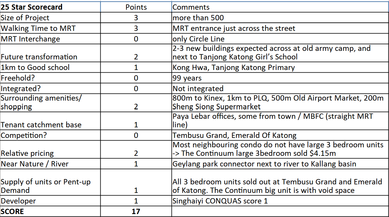 We used our proprietary 25-Star grading system to assess the investment value of a 3-bedroom apartment in this development.