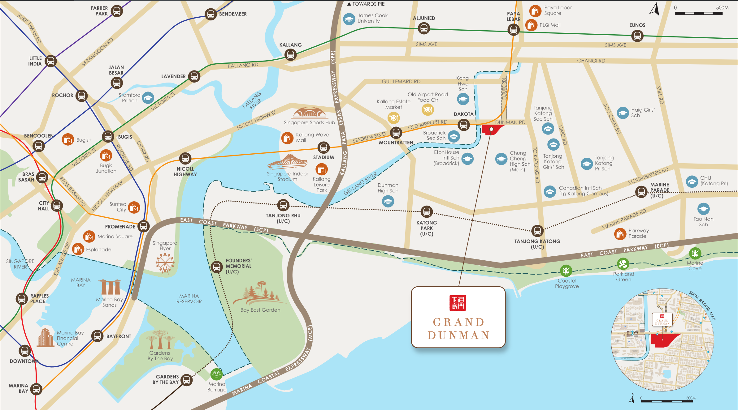 Grand Dunman is close to 5 schools, and within 1 kilometer to Kong Hwa School which is a Primary School. Within a short drive are shopping malls like Paya Lebar Quarter and Singpost Centre. Located just 15 minutes drive to the city, the development is quickly accessible to the KPE, ECP and PIE.